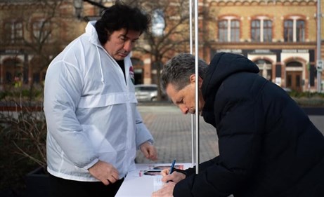Lelkes támogatónk este 11-kor egyedül plakátozott munka után, amikor az utolsó plakátot helyezte volna ki a városi sportcentrum közelében.