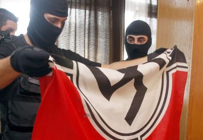 Ha beigazolódnak a vádak, a büntetlen előéletű férfival szemben, akkor akár 2-től 8 évig terjedő szabadságvesztéssel is sújthatják. A helyszíni szemle és az ingatlan átvizsgálása szakértők és technikai eszközök bevonásával jelenleg is zajlik. (Ha sarló-kalapácsos zászlói lettek volna, biztosan nem rendelik el - a szerk.)