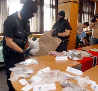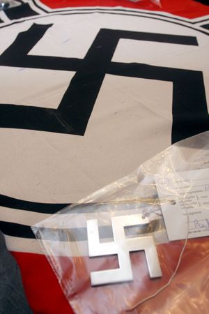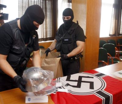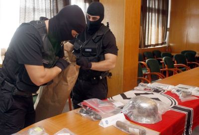Az egyenruhások komoly erőkkel vonultak a helyszínre, ahol őrizetbe vették az ingatlan tulajdonosát. A Csongrád megyéből néhány hónappal ezelőtt a Viharsarokba költözött, hatvanesztendős rokkantnyugdíjas villanyszerelőnél a fegyverarzenál mellett két horogkeresztes zászlót, házilag készített horogkereszteket, valamint egy II. világháborús rohamsisakot is lefoglaltak.