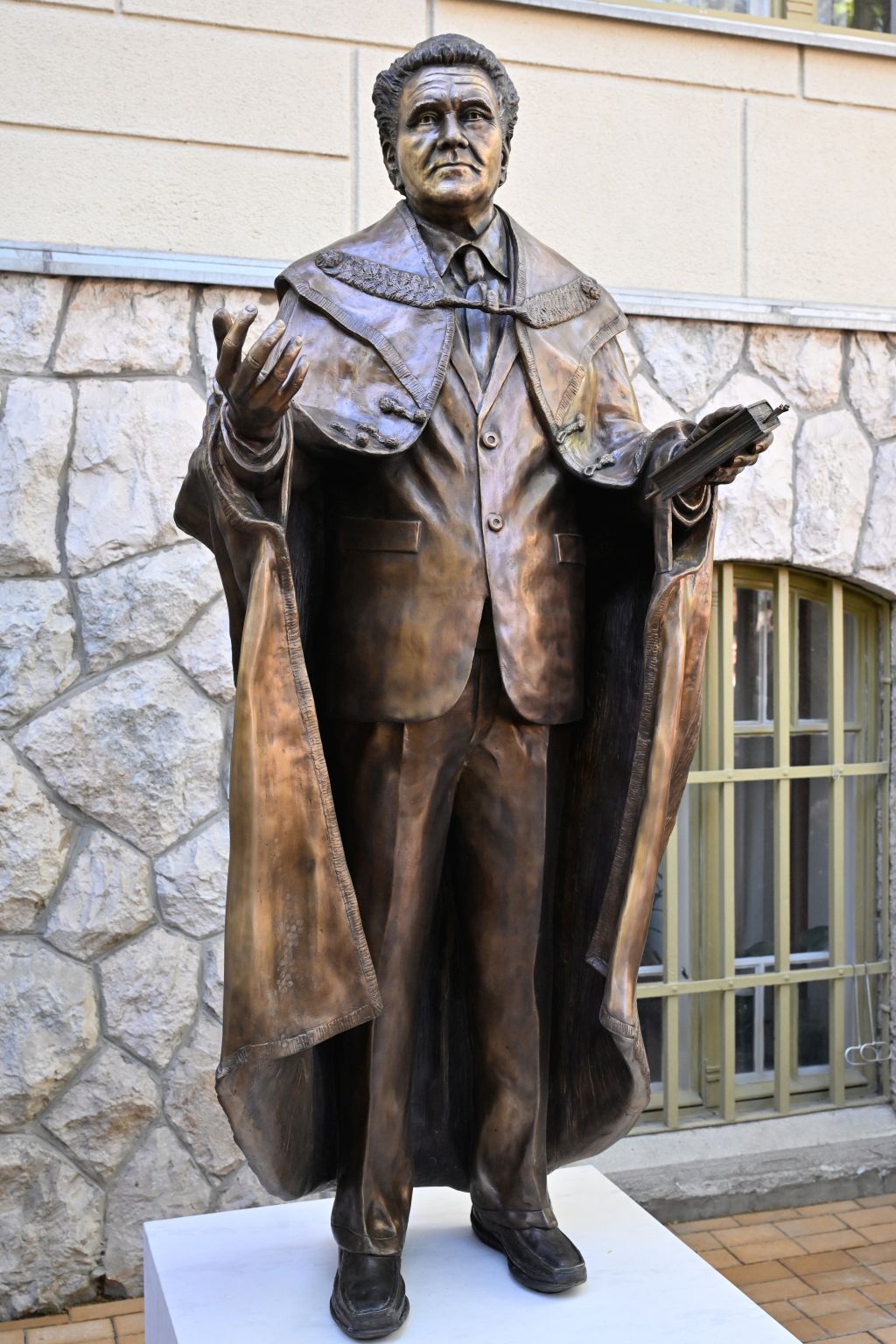 A néhai püspök szobrát Babusa János szobrászművész gipszmintája alapján az Art Bronze Kft. öntötte bronzba. A 205 centiméter magas szobor egy 55 centiméteres mészkő posztamensen áll.