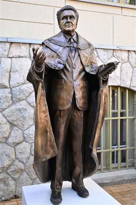 ![]() Hegedűs Loránt író, a Dunamelléki Református Egyházkerület egykori püspökének szobra a református zsinati székház kertjében (kép: MTI/Máthé Zoltán) |