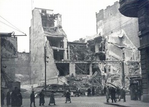 A tegnapi kép: Az Üllői út és a Ferenc körút sarkán állott ház romokban, október 30. Ma a Lottóház áll a helyén, Üllői út 49-53.