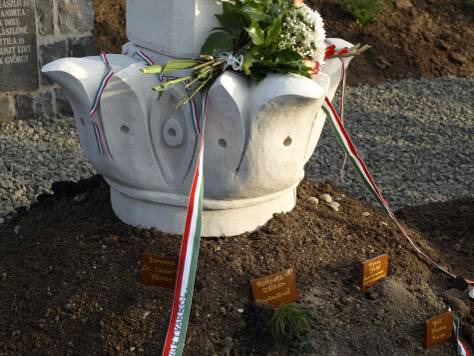 A Kettős Kereszt alatti hármas halmot a Kárpát-medence és a nagyvilág különböző tájairól hozott földdel hintették be, amit a szervezők égetett kerámia-táblácskákkal jelöltek meg. Szvorák Zsuzsa Fülekről (Felvidék) hozott földet, Patrubány Miklós Kolozsvárról, Fuksz Sándor Kaposkelecsényről (Felvidék), Komsa József Szatmárnémetiből, Oláh István Egerből, Brassóból, Sepsiszentgyörgyről, Zeteváraljáról, Gyulakutáról, Szászfenesről és Köröstopáról, Hompoth Zoltán Hargitafürdőről és Vecsésről, Gábor Ferenc a Fekete-Körös völgye magyar vértanú falvaiból, Köröstárkányról, Kisnyégerfalváról, Magyarremetéről és Gyantáról, Szomor Ferenc a hős Szigetvárról, Rácz Szabó László Délvidékről, a Tisza jobb- és bal partjáról, a bácskai Zentáról és a bánsági Csókáról. Gyergyószentmiklósról Mezei János polgármester küldeményét Nagy Zoltán alpolgármester hozta el, a Trianon után visszatért Somoskőújfaluból Tóth László polgármester, Binderné Pálffy Györgyi az Ausztriához csatolt Alsóőrről, Simon Enikő Mohácsról. Bernard le Calloc’h professzor a Magyar Nemzetért Érdemérem kitüntetettje Franciaországból, Botos László Amerikából küldött földet.