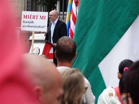A Jobbik elnöke a bevándorlók befogadását a közel-keleti országok feladatának nevezte, és az Egyesült Államok felelősségét hangsúlyozta. Mint mondta, amíg Amerika világuralomra tör, addig nem lesz béke. Európát pedig "béna kacsának" minősítette, amely "csak nézi az eseményeket, hápog és tömik". Ha most nem szedi össze magát, akkor semmi nem marad belőle - tette hozzá.