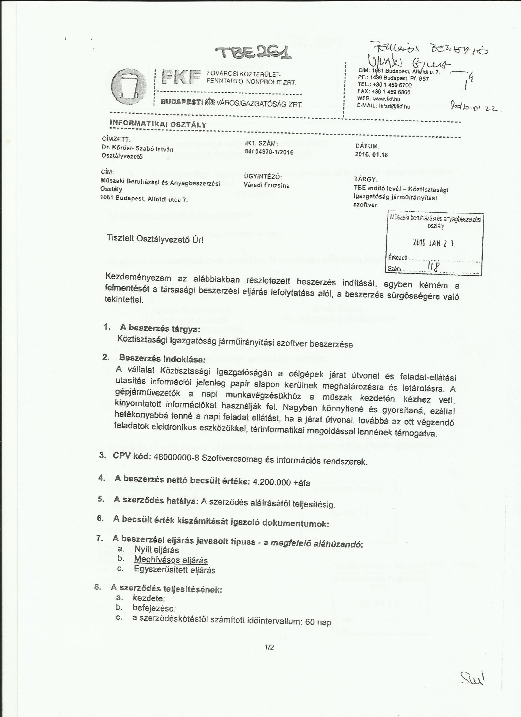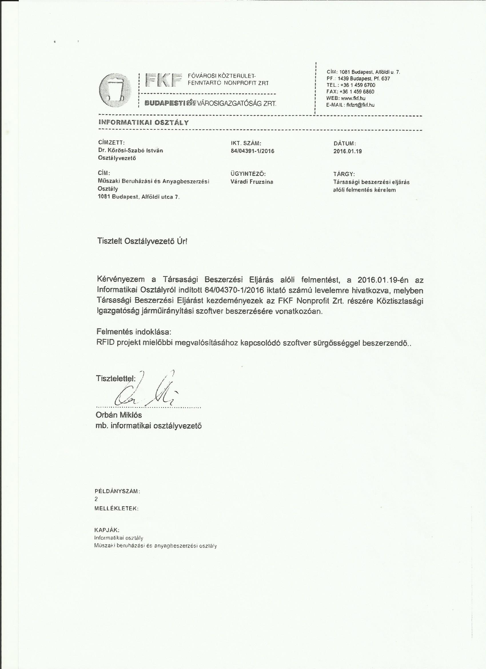 Hivatalosan január 18-án az informatikai osztályvezető kérte a beszerzés elindítását (lásd itt és itt), egyben a beszerzési eljárás alóli felmentést. A felmentést azzal indokolja, hogy a szoftver sürgősséggel beszerzendő.