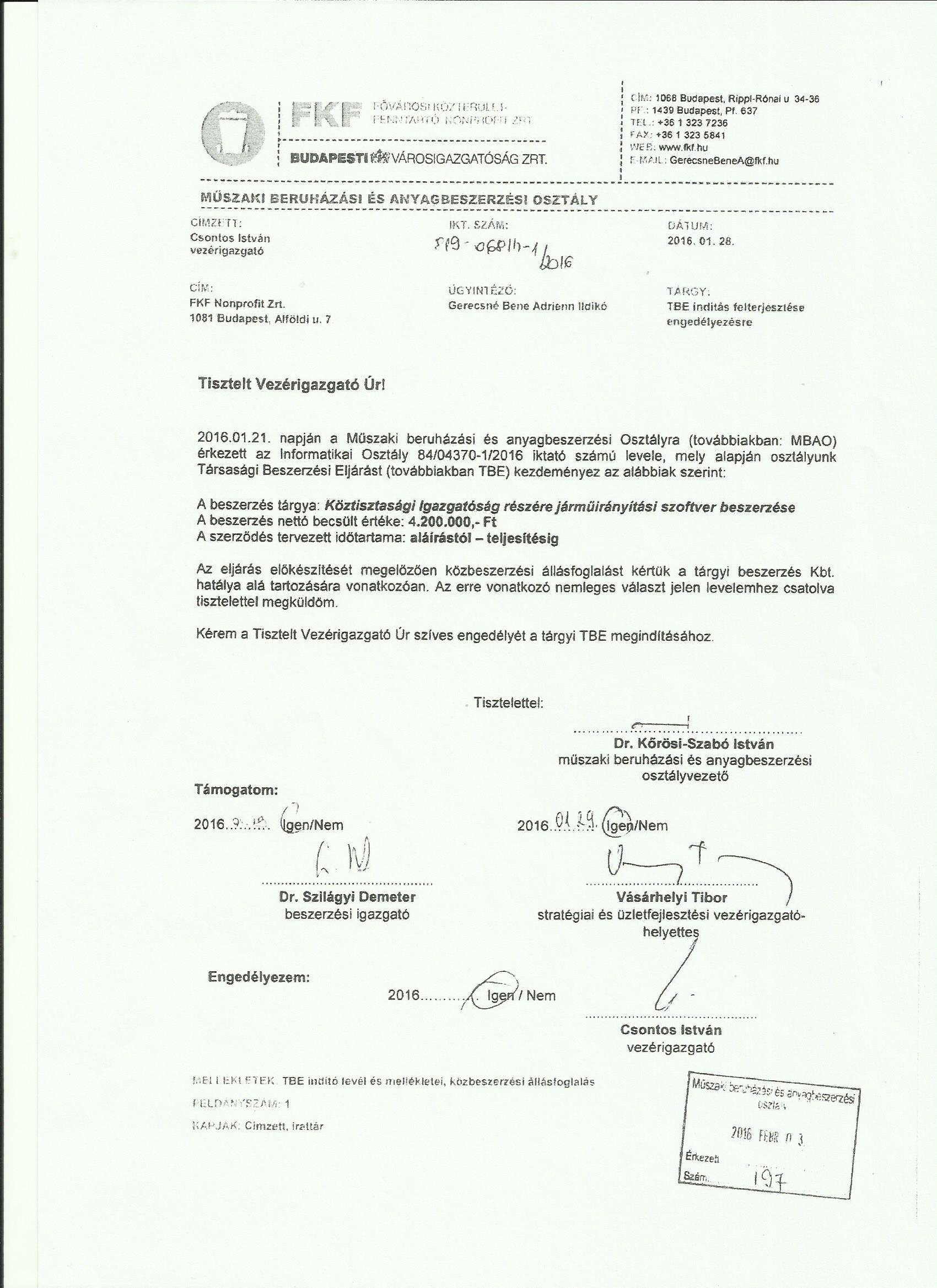 A beszerzést január legvégén maga Csontos István vezérigazgató engedélyezte.