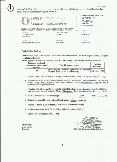 Azért egy kevés jutott a stróman cégnek is, a SAS Group „csak” 54 milliót vitt el, 6 millió a WSH-nál maradt. A szerződést többek közt azzal indokolták, hogy a vállalat vezetése felismerte, hogy a 2016. évtől kezdődően az informatika területén halaszthatatlan fejlesztések, a levelezőrendszer cseréje és a hardver-infrastruktúra korszerűsítése is szükségessé vált, ami kikényszerítette az ilyen szakértelem haladéktalan beszerzését. A szerződés szerint a cég Novell tanácsadói támogatást nyújt az FKF hardvereszközparkjával és a kapcsolódó alapszoftverekkel kapcsolatos követelmények elemzése, tervezése, implementálása és üzemeltetése során.