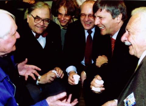 ![]() Jancsó Miklós, Mécs Imre, Eörsi Mátyás, Demszky Gábor és Bálint György az SZDSZ Országos Tanácsának ülésén, 1994 (kép: visszaemlékezések.hu) |