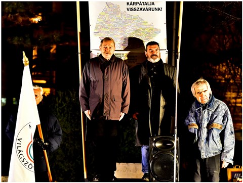 A rendezvény fő szónoka dr. Drábik János, a Trianon Társaság elnöke volt, aki ismertette a mai Ukrajna kialakulásának történelmi előzményeit, és drámaian éles szavakkal bírálta az immár egy éve folyó, és rengeteg emberáldozattal járó háború mögött rejlő nagyhatalmi játszma felbujtóit, szereplőit és gátlástalan haszonélvezőit.