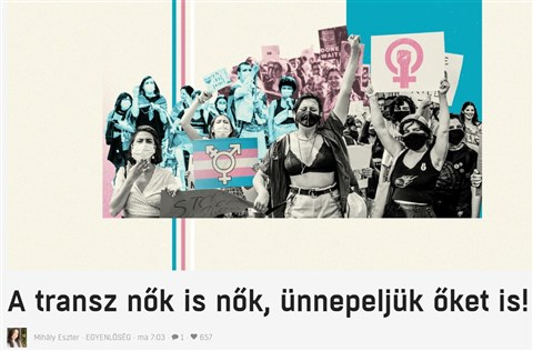 Mihály Eszter, az Amnesty International munkatársa arról írt nőnap alkalmából a 444-en megjelent cikkében, hogy március 8-a „a nők sokféleségéről is szól, a különböző társadalmi és gazdasági, családi háttérrel, vallással és fizikai adottságokkal rendelkező nőkről. Köztük a transz nőkről is”.