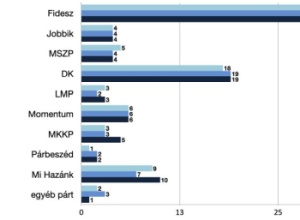 Nem változott a Demokratikus Koalíció támogatottsága: az összes választó 13 százaléka sorakozik fel mögéjük, míg az aktív szavazók körében 19 százalékos Gyurcsány Ferenc pártjának tábora. A Momentum is stagnál: a párt májusban és most is 5 százalékot ért el a választókorú népesség körében, ahogy az aktív szavazóik száma sem változott, akik 6 százaléknyian vannak.