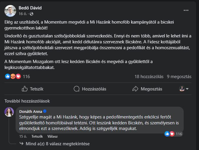 Ez, Momentum, ez a ti "értékrendetek", így legalább mindenki láthatja, kik vagytok valójában! Lehullt az álságos lepel, ennyire érdekel titeket a gyermekek védelme. Fontosabb a beteges Isten- és emberellenes ideológia, az LMBTQP-őrület képviselete számotokra, mint a gyermekek érdekei.