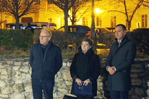 ![]() Pokorni Zoltán (balra), V. Naszályi Márta (középen) és Őrsi Gergely (jobbra) nagykoalícióban gyalázták Európa hőseit a közös "megemlékezésen" (fotó: hegyvidek.hu) |