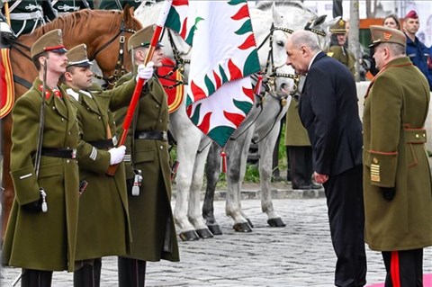 Március 10-én délután tartották Sulyok Tamás új köztársasági elnök beiktatását a budapesti Szent György téren. A ceremónia a díszzászlóalj és a gróf Nádasdy Ferenc huszárosztály katonai tiszteletadásával kezdődött, majd a történelmi zászlók bevonulása és a történelmi egyházak áldása után Sulyok Tamás köztársasági elnök ünnepi beszédével zárult – írta a 24.hu.