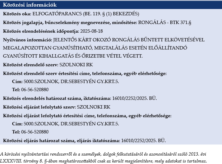A MÁV-os rongáláskor a körözés kiadása után a rendőrségi körözési oldalon ezt a cigányt találtam, amelyikre a körözés elrendelésének dátuma és a helyszín is illik, azonban nem voltam benne biztos, ezért nem küldtem be.
