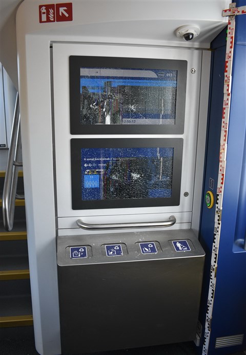 Vasárnap éjjel Újszászon egy ismeretlen személy rongálta meg a MÁV egyik KISS motorvonatát. A társaság közleménye szerint legalább 10 ablakot törtek be, emellett szétverték a belső monitorokat is, valamint az érintett állomás egyik esőbeállója sem úszta meg sértetlenül az incidenst.