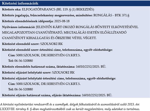 Mint ismertetik, augusztus 17-én érkezett bejelentés a rendőrségre, miszerint a Fonyód-Szolnok útvonalon közlekedő és Újszászon várakozó személyvonatot megrongálták, a vészüvegtörő kalapáccsal több oldalablakot, és a vagonban lévő monitort betörték. Ezt követően az ismeretlen elkövető a peronon lévő várakozóhelyiség oldalüvegét is betörte, jelentős kárt okozva a sértettnek.