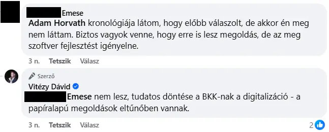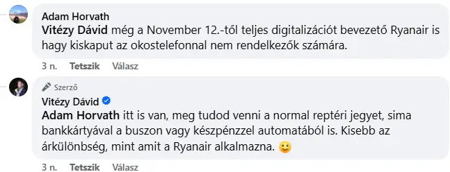 Egy optimista Facebook-kommentelő azon hozzászólására, hogy biztosan lesz majd megoldás arra, hogy automatában is meg lehessen vásárolni az 1000 forintos jegyet a 100E repülőtéri járatra, Vitézy azt írta:
