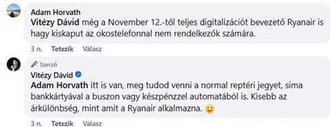 Egy másik hozzászóló azt pedzegette, hogy még a novembertől teljes digitalizációt bevezető Ryanair légitársaság is hagy majd kiskaput azoknak, akiknek nincsen okostelefonjuk.