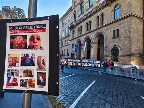 Tanúk, trombitálás, skandálás – ismét hangosan vette kezdetét a 2023-as antifa támadások tárgyalása a Fővárosi Törvényszéken. A teremben Simeon Ravi Trux (az Index szerint Maja, csak mert ő nőnek képzeli magát) ismét a bv. kommandósai gyűrűjében érkezett, a padsorok megteltek a német vádlott szeretteivel és érdeklődőkkel, eközben az utcán többször is kiabálva követeltek büntetlenséget az elkövetőknek.