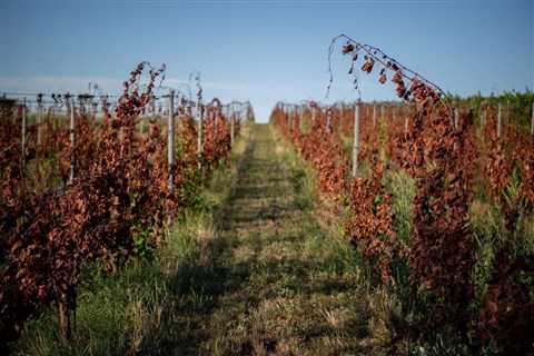 ![]() Amerikai szőlőkabóca által fertőzött, kipusztult szőlőültetvény a Szent György-hegyen (fotó: Bődey János / Telex) |