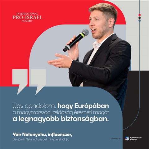 Jair Netanjahu szerint Magyarország példa arra, hogy egy nyugati ország hogyan tud úgy részese lenni a Nyugatnak, hogy közben nem veszíti el az identitását és a szuverenitását. Az "influenszer" elmondta, nagyon nagy öröm számára, hogy Magyarországon lehet, már sokszor járt itt, Magyarország és Budapest az egyik kedvenc helye a világon, és most az Alapjogokért Központ által szervezett Pro-Israel Summit vendége volt.