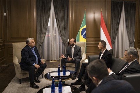 Az MTI által kiadott kép tanúsága szerint Orbán Viktor valóban találkozott az elítélt Jair Bolsonaro fiával Washingtonban. Ahogy azt a 444 előzetesen megszellőztette, csütörtökön a miniszterelnök az Amerikában önkéntes száműzetésben élő Eduardo Bolsonaróval tárgyalt, amihez csatlakozott Szijjártó Péter külügyminiszter és Lázár János közlekedési miniszter is - írja a 24.