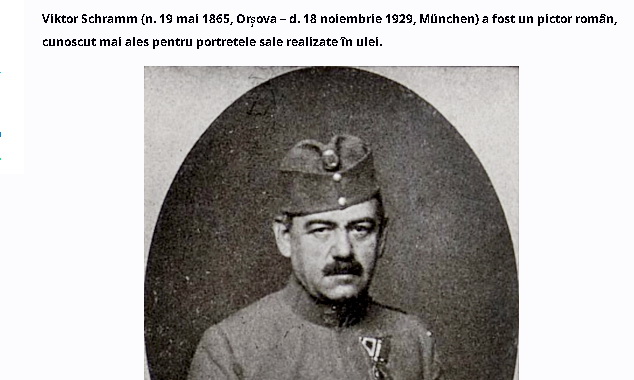 ![]() A román nyelvű journalfm.ro 2025. május 19-én: „Viktor Schramm (Orsova, 1865. május 19. - München, 1929. november 18.) - román festő volt |