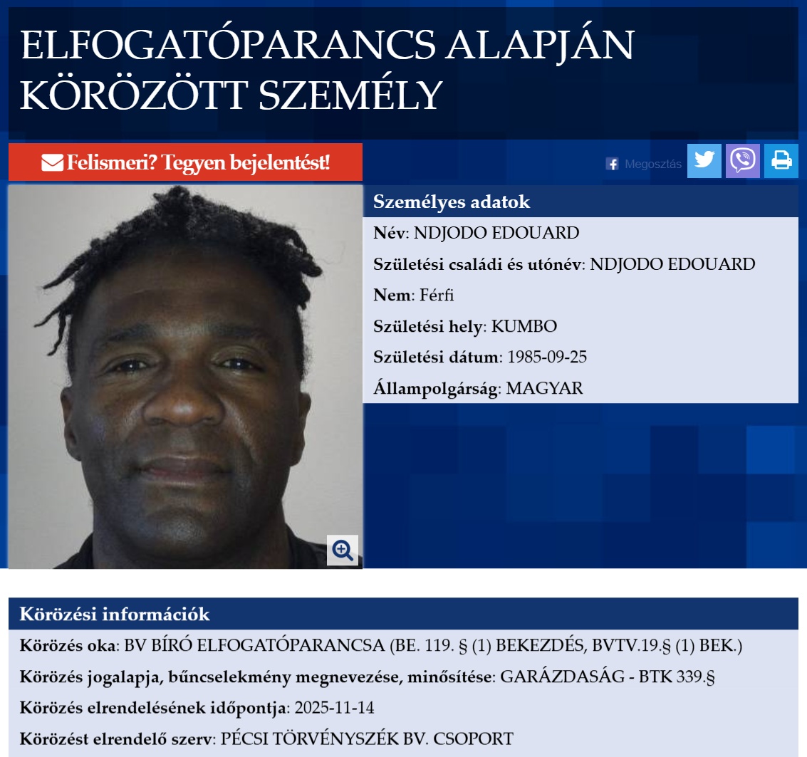 Elfogatóparancsot adtak ki Edouard Ndjodo, a Siófok és a Ferencváros egykori légiósával szemben garázdaság miatt. A korábbi támadó a pályafutása alatt több alkalommal is összetűzésbe került a játékostársaival, sőt szurkolókkal is – írja a Blikk nyomán az Index.