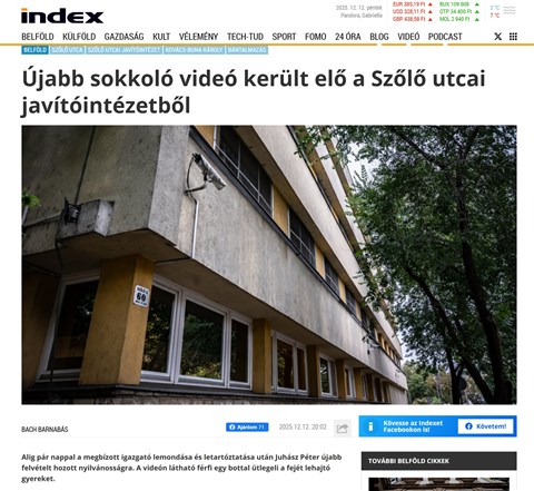 Egy bottal fenyegeti az egyik fiatalkorú bentlakót egy férfi a Szőlő utcai intézményben – ez látható Juhász Péter elmondása szerint azon a videón, amelyet pénteken tett közzé a Youtube-on, írja a 24.