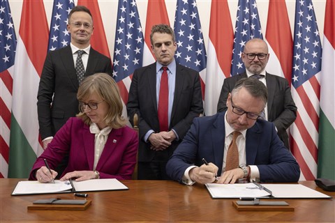 "Ez azt jelenti, hogy a következő öt évben összesen kétmilliárd köbméternyi amerikai eredetű cseppfolyósított földgáz kerül be a magyar energiaellátásba, és korábban ilyen nem volt (…) Ez az első alkalom, hogy amerikai cseppfolyósított földgáz a magyar energiaellátás része" - mondta.