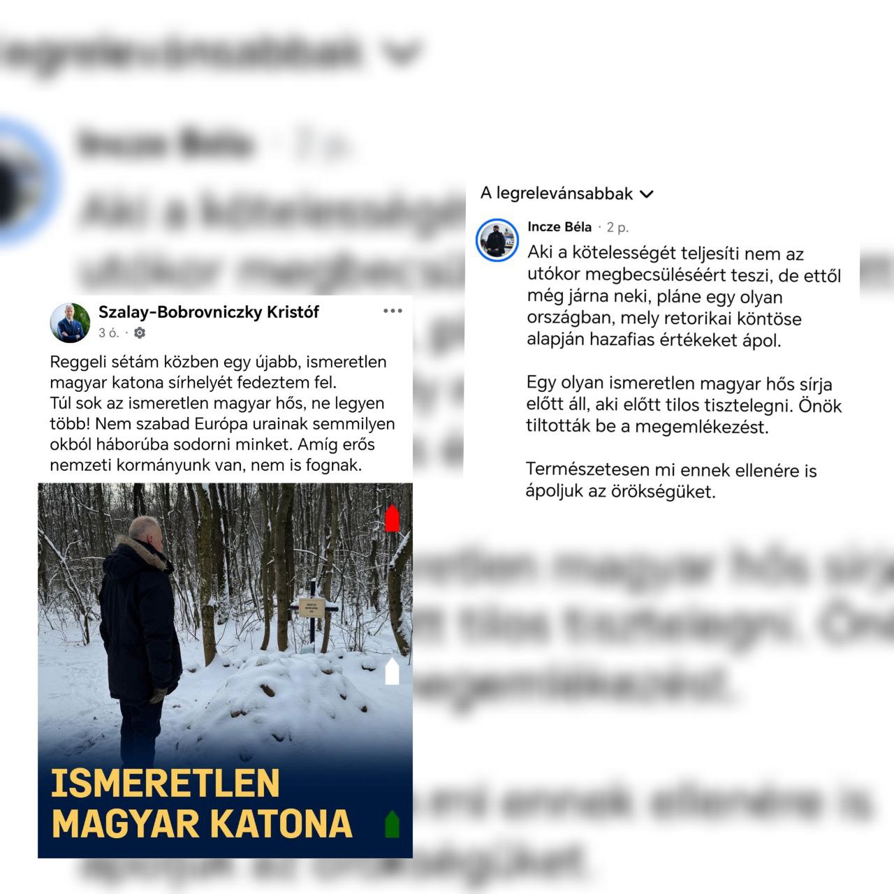 – Reggeli sétám közben egy újabb, ismeretlen magyar katona sírhelyét fedeztem fel. Túl sok az ismeretlen magyar hős, ne legyen több! Nem szabad Európa urainak semmilyen okból háborúba sodorni minket. Amíg erős nemzeti kormányunk van, nem is fognak – fogalmaz a közösségi oldalán.