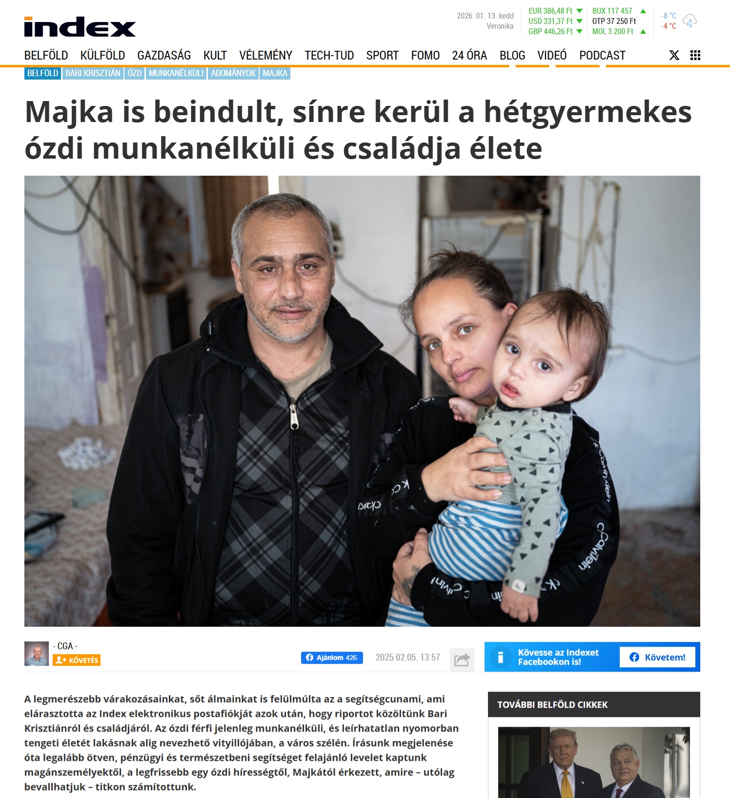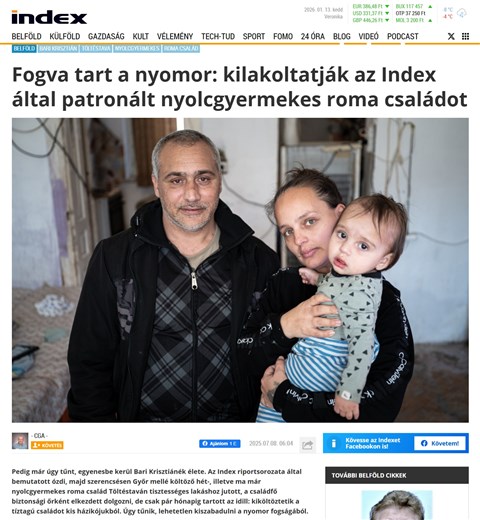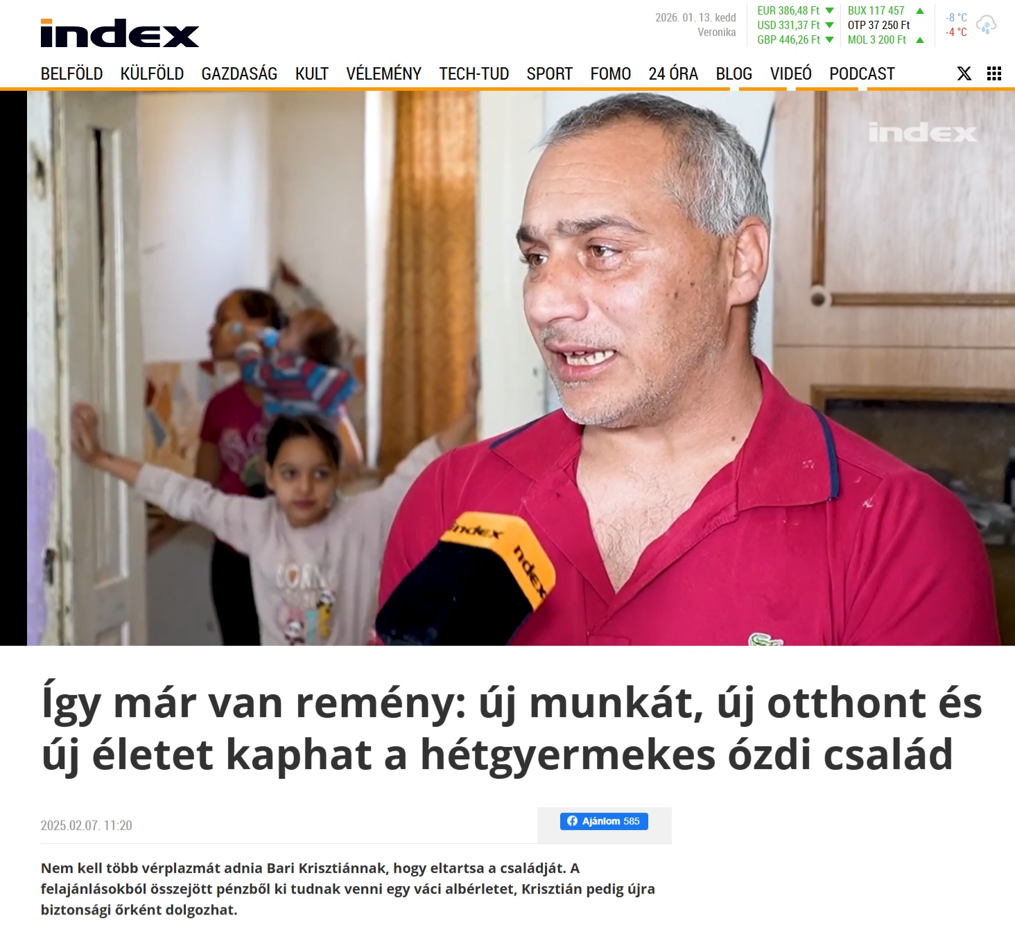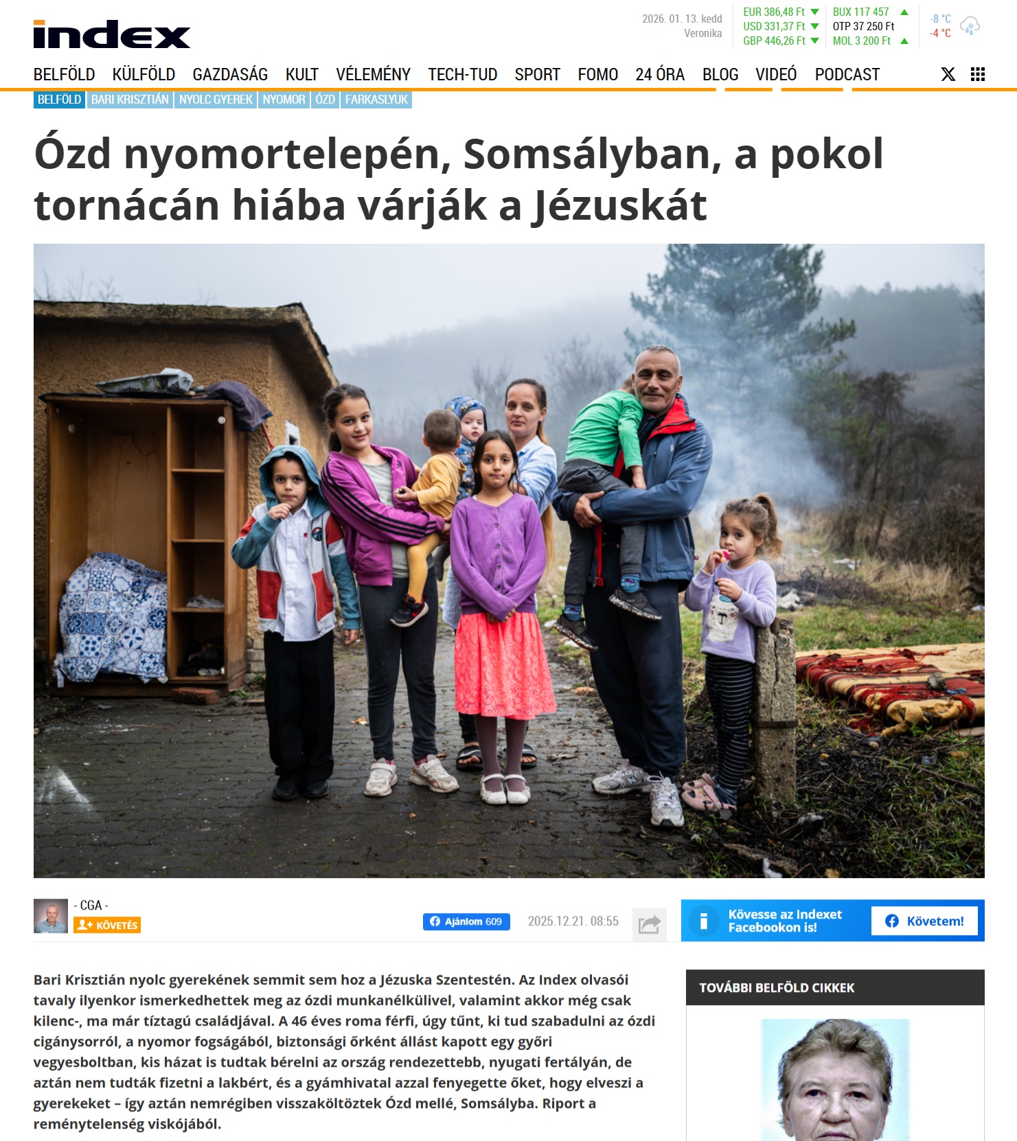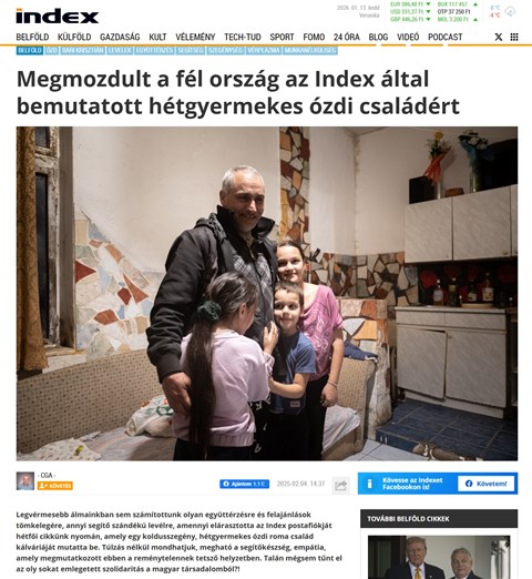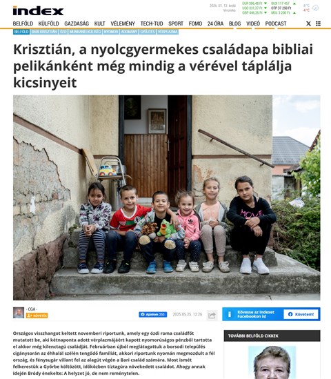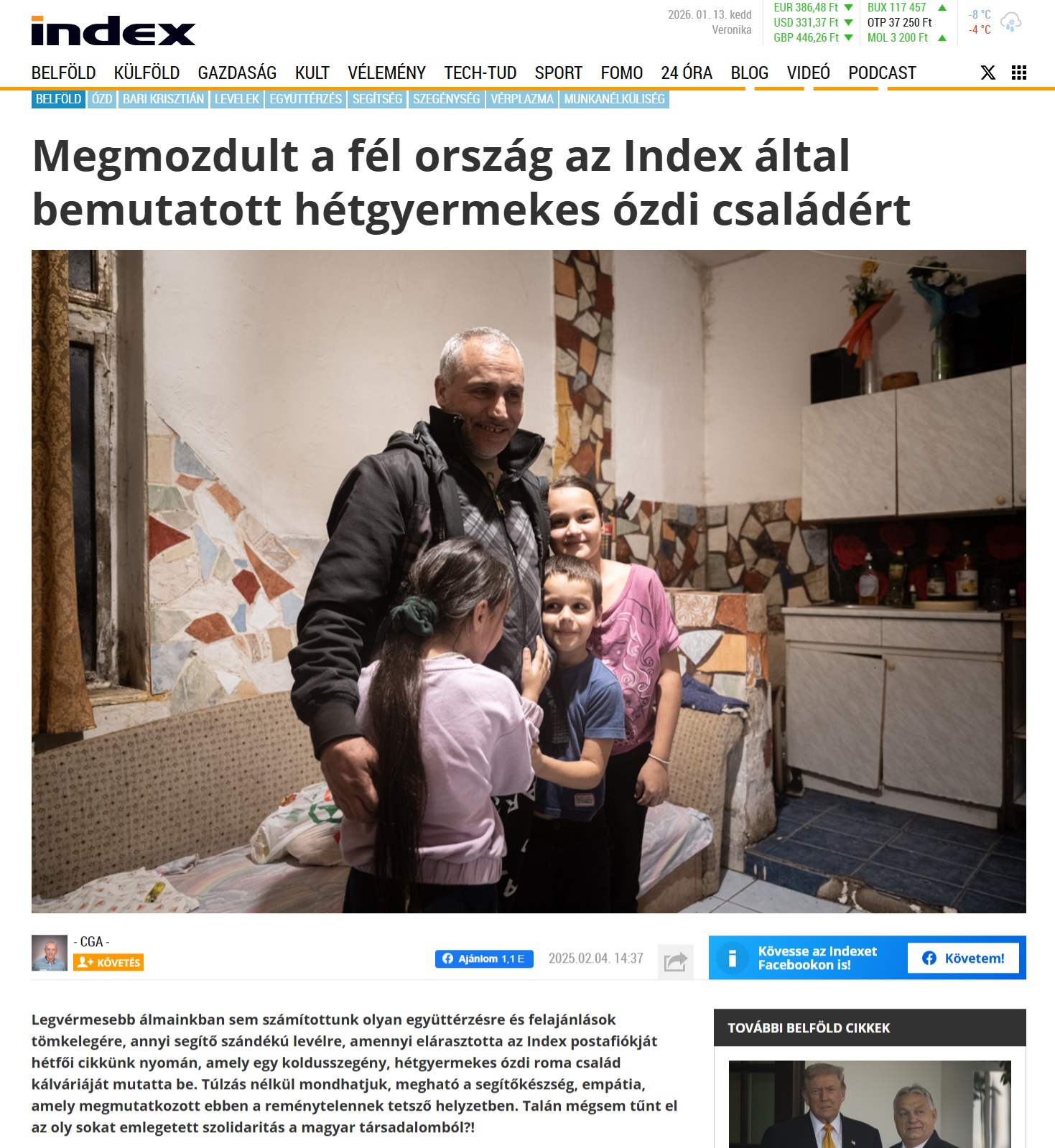 Hónapokon át hülyítette naiv olvasóit az Index a nyolcgyermekes ózdi cigány kiscsalád meséjével, akik az integráció és felemelkedés csodáját tudták megvalósítani. Persze nem önerőből, hanem sok-sok segítséggel, a fideszes lap ugyanis nem csak tucatnyi tündérmesét fabrikált róluk (lásd alább), hanem egyben folyamatosan próbálta adakozásra buzdítani az olvasókat, és lehetőleg mindenkit, hiszen íme, itt a bizonyíték, hogy minden eddigi tapasztalat (tapasztalat = rasszizmus) ellenére mégis lehet.