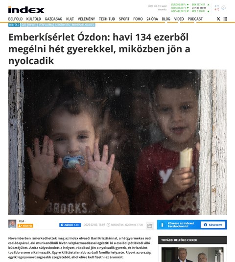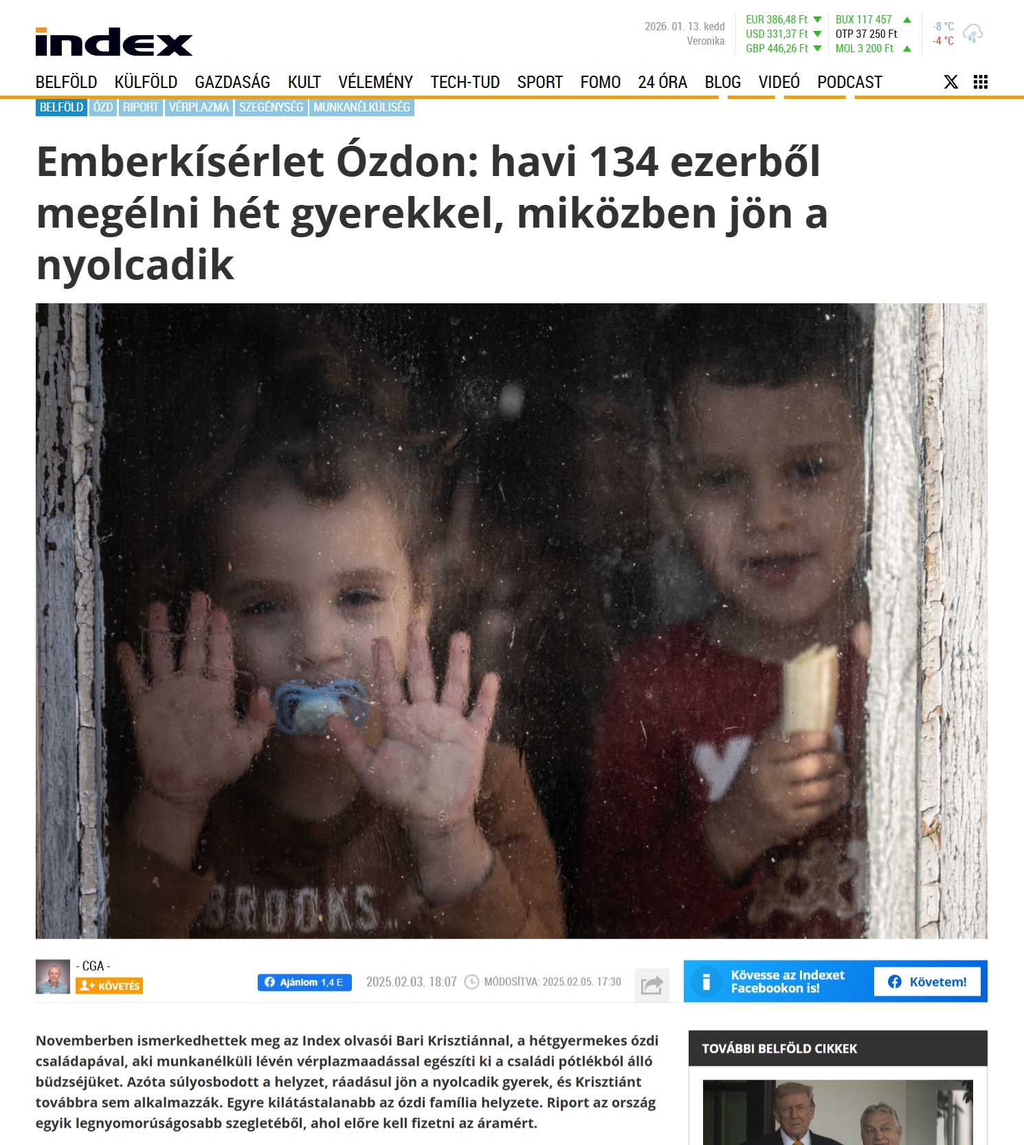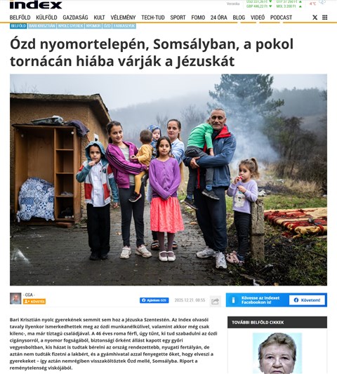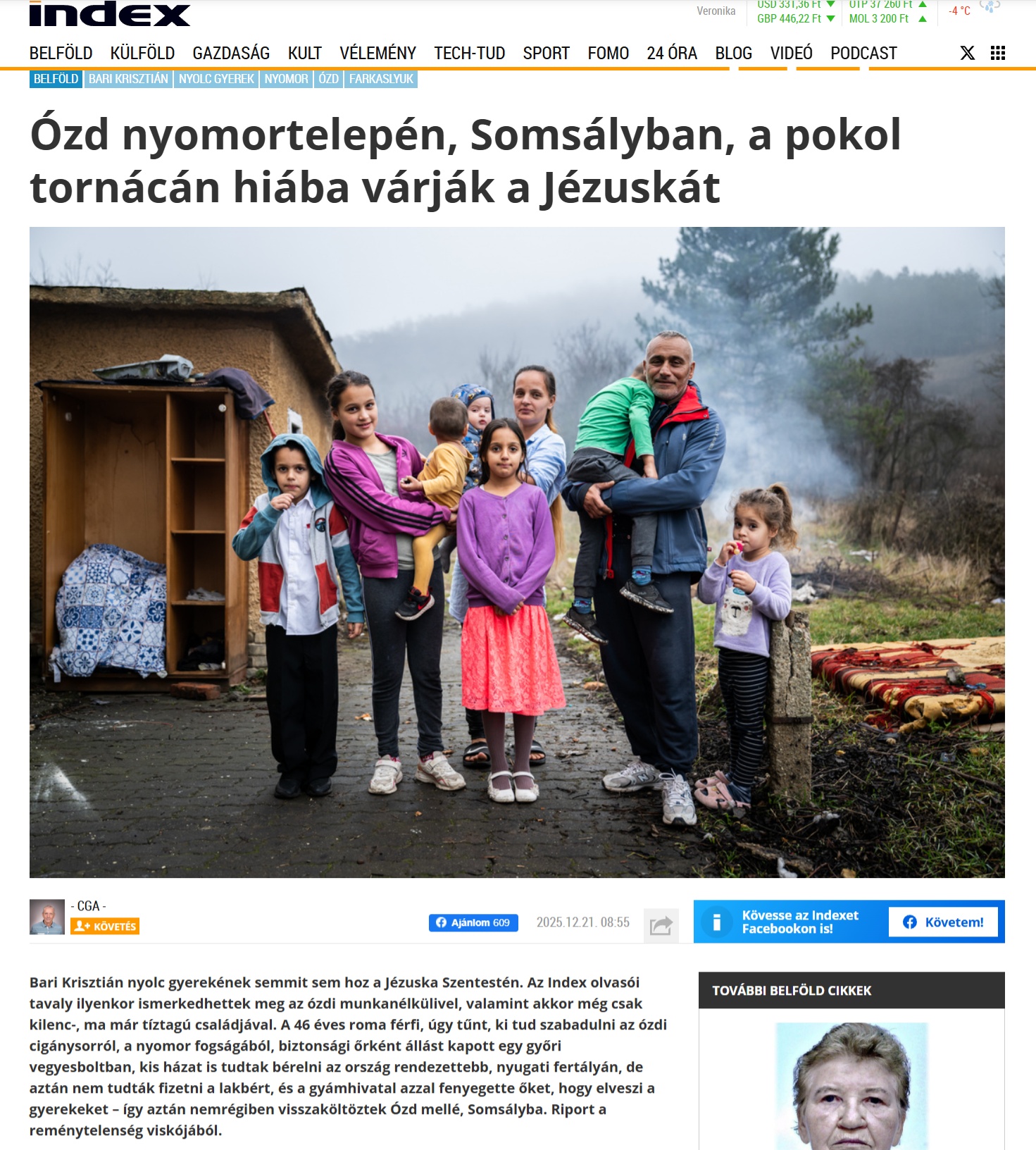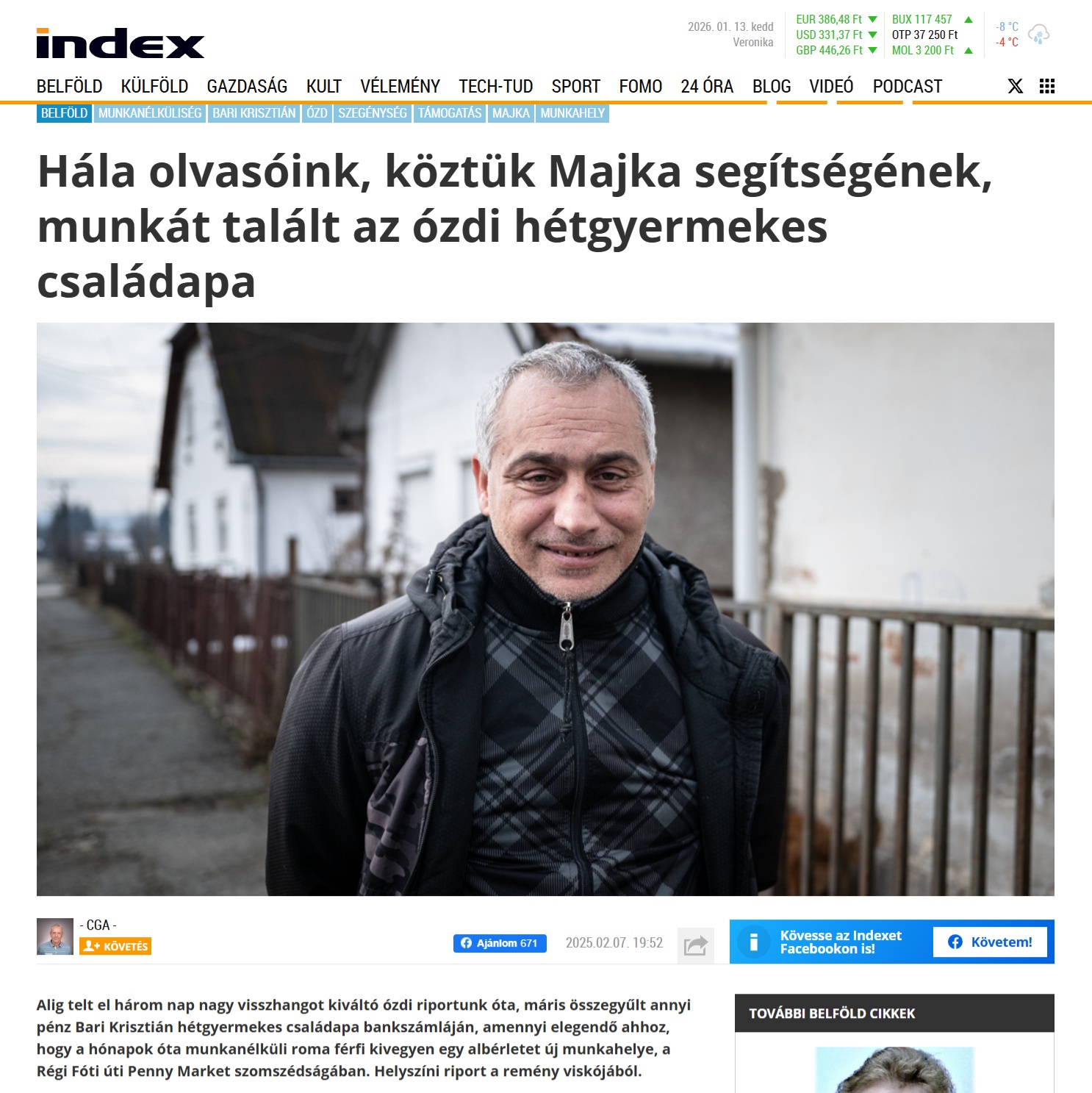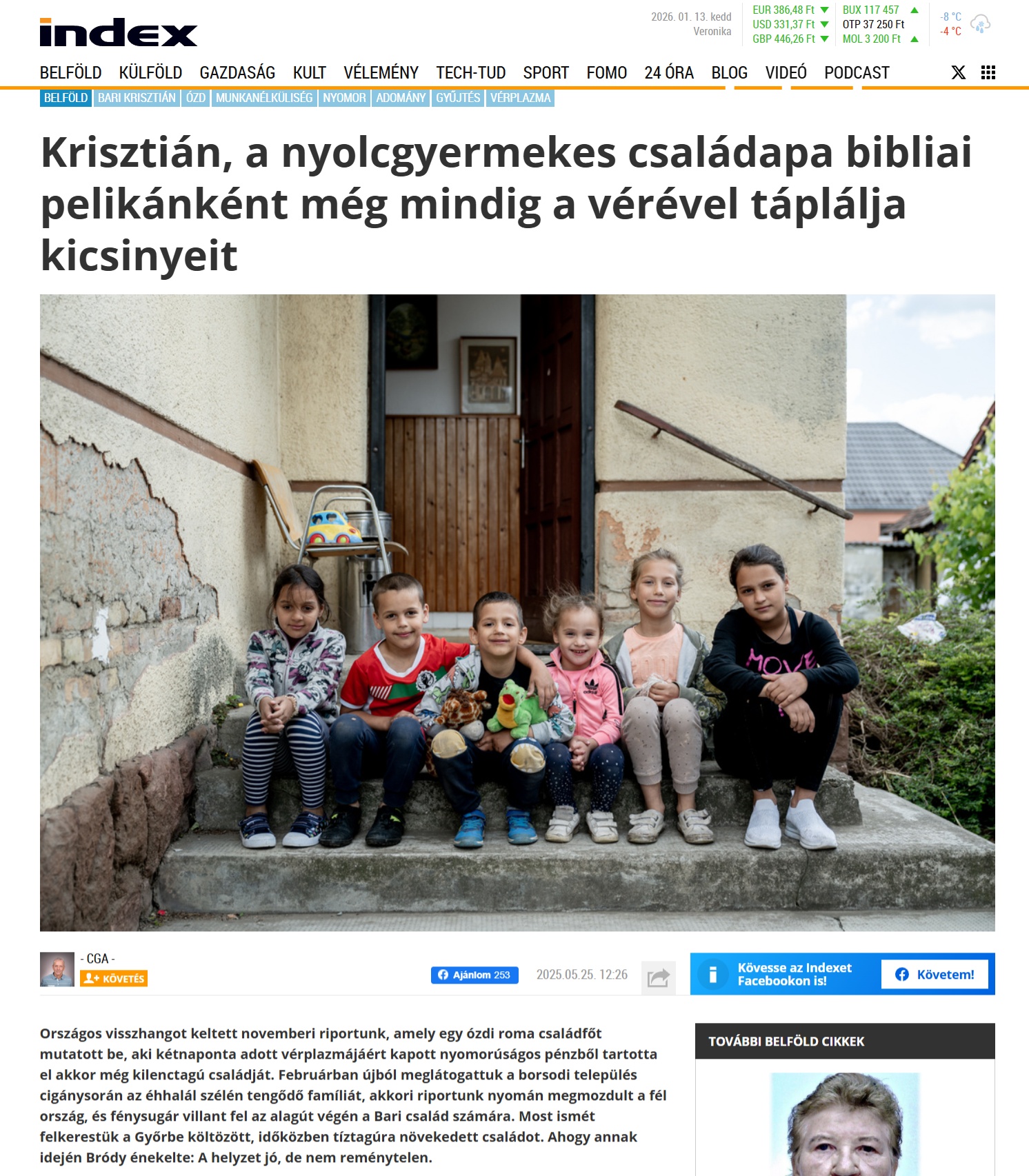 Hónapokon át hülyítette naiv olvasóit az Index a nyolcgyermekes ózdi cigány kiscsalád meséjével, akik az integráció és felemelkedés csodáját tudták megvalósítani. Persze nem önerőből, hanem sok-sok segítséggel, a fideszes lap ugyanis nem csak tucatnyi tündérmesét fabrikált róluk (lásd alább), hanem egyben folyamatosan próbálta adakozásra buzdítani az olvasókat, és lehetőleg mindenkit, hiszen íme, itt a bizonyíték, hogy minden eddigi tapasztalat (tapasztalat = rasszizmus) ellenére mégis lehet.