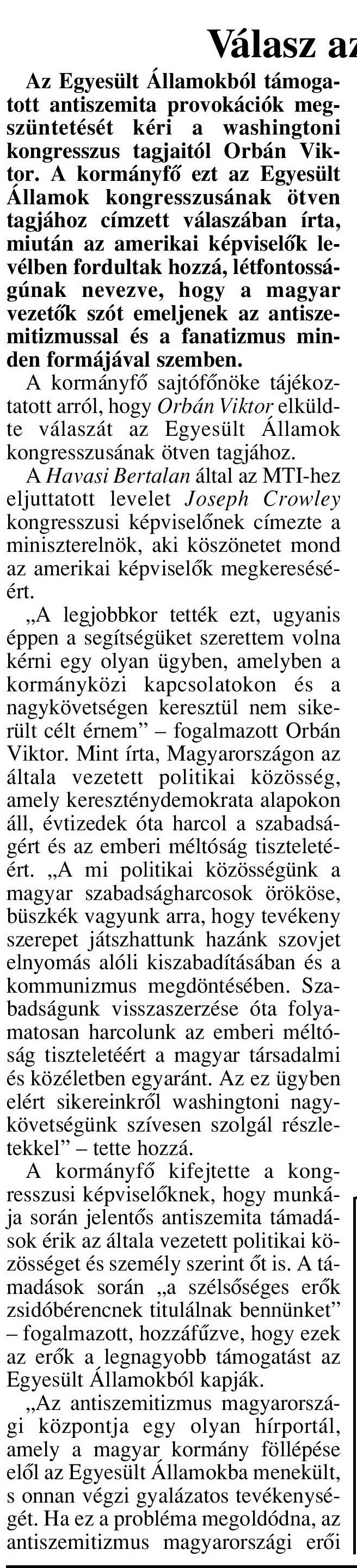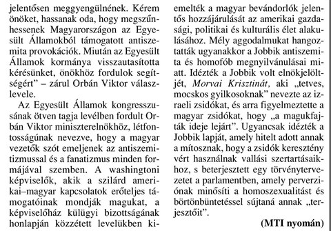Hiszen a nemzeti radikális oldal elleni fellépés terén egy követ fúj a korábban a gárdisták felpofozásáról ötletelő Orbán azokkal, akik ellen szavakban a nagy háborúját vívja (ami körülbelül olyan, mint a Népszava kibélelése állami tízmilliókkal). Nemcsak a Becsület napjának zsidó parancsra való betiltásáról és a korábbi nemzeti radikális események elleni fellépésekről van szó, hanem egészen konkrétan portálunkról is. Ugyanis nemcsak a Gyurcsány-rezsim üldözte vélt vagy igazi szerkesztőinket és próbálta lekapcsoltatni portálunkat, ebben sem különbözik tőlük a "nemzeti" Fidesz-kormány. Íme egy levélről szóló hír 2012-ből, amikor Orbán a washingtoni kongresszustól kérte a Kuruc.info megszüntetését. Az indoklás egy része különösen érdekes, azt írja: munkája során "jelentős antiszemita támadások érik az általa vezetett politikai közösséget és személy szerint őt is"...