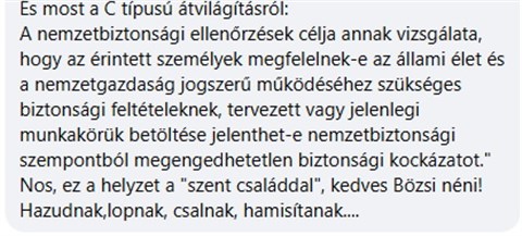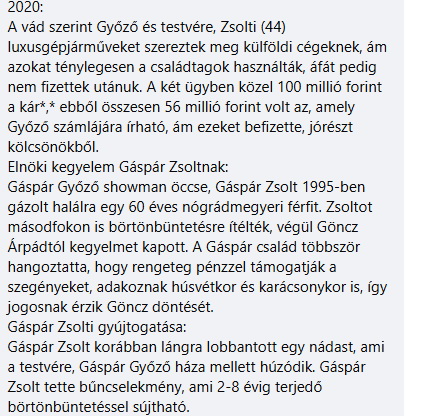 Levelében egy közösségi médiás tartalomgyártó, „Bözsi néni” egyik friss bejegyzésére reagál. A szóban forgó írás közéleti témát érintett, és a levélíró szerint kritikus hangvételben foglalkozott egy aktuális politikai üggyel, valamint a Gáspár család nevével összefüggésbe hozott eseményekkel.