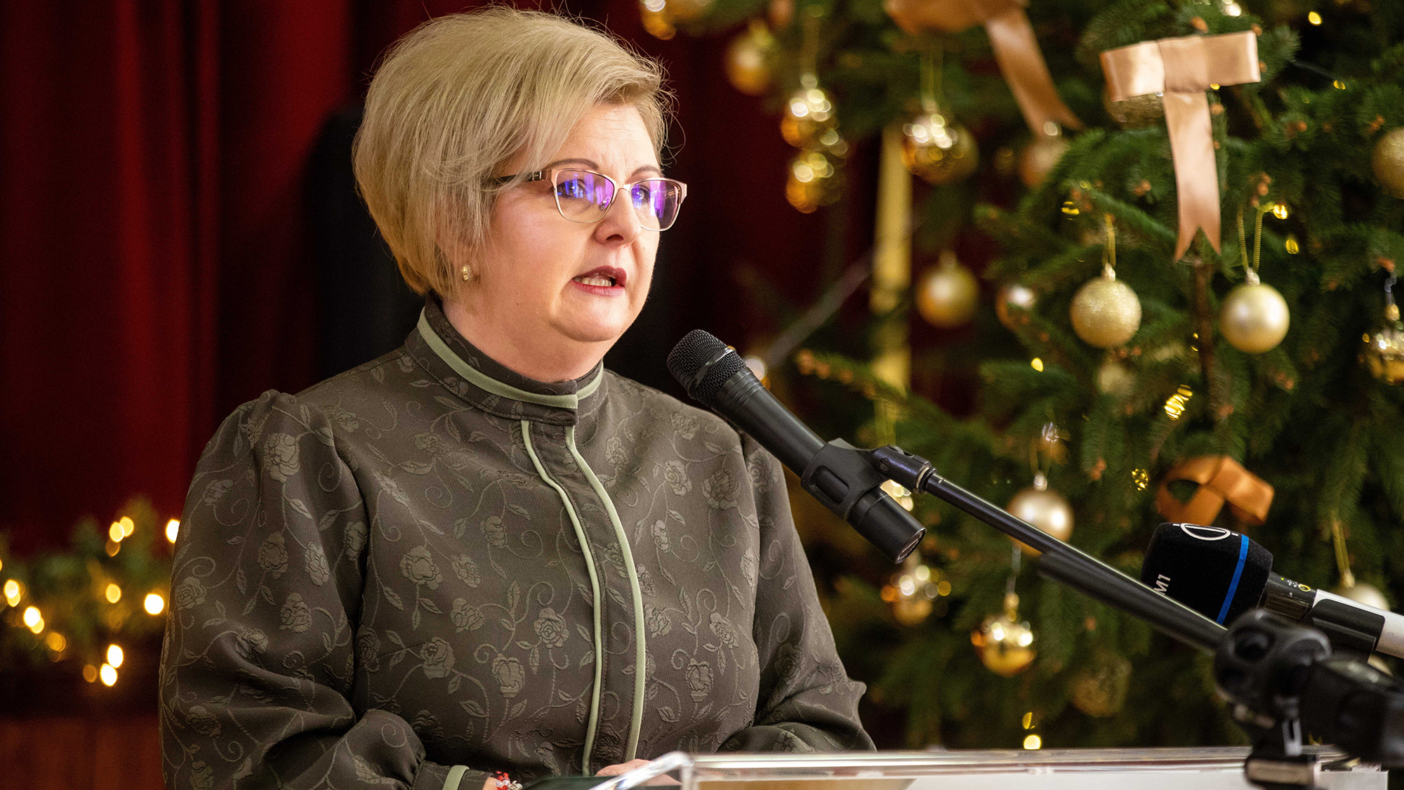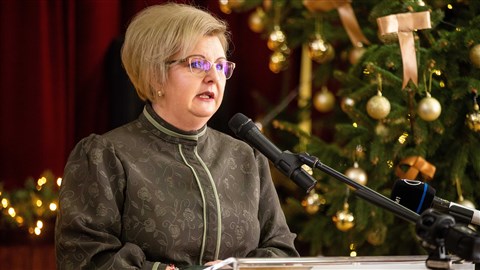 ![]() Tát Margit (Fidesz-KDNP) polgármester beszédet mond a Békés megyei nemzetiségi díjak átadása alkalmából rendezett ünnepségen 2022. december 13-án (fotó: Rosta Tibor / MTI) |