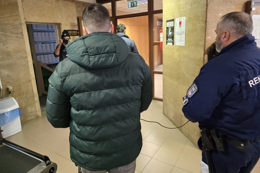 A férfit a rendőrök vezetőszáron hozták a Győri Járásbíróságra.