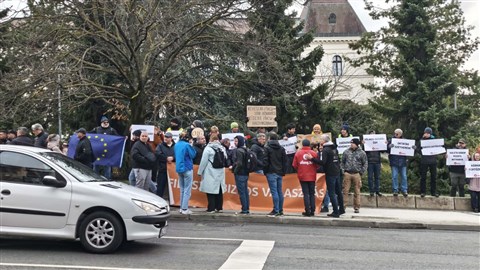 Az ellenzéki aktivisták a közlemény szerint Orbán kampányrendezvénye mellett sípoltak, skandáltak, és plakátokat tartottak fel, amelyeken a Fidesz-KDNP-kormánnyal szemben kritikus feliratok szerepeltek.
