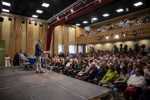 ![]() A Mi Hazánk Mozgalom kampányzáró rendezvénye a Fővárosi Művelődési Házban 2026. április 11-én, szombaton (fotó: MTI/Balogh Zoltán) |