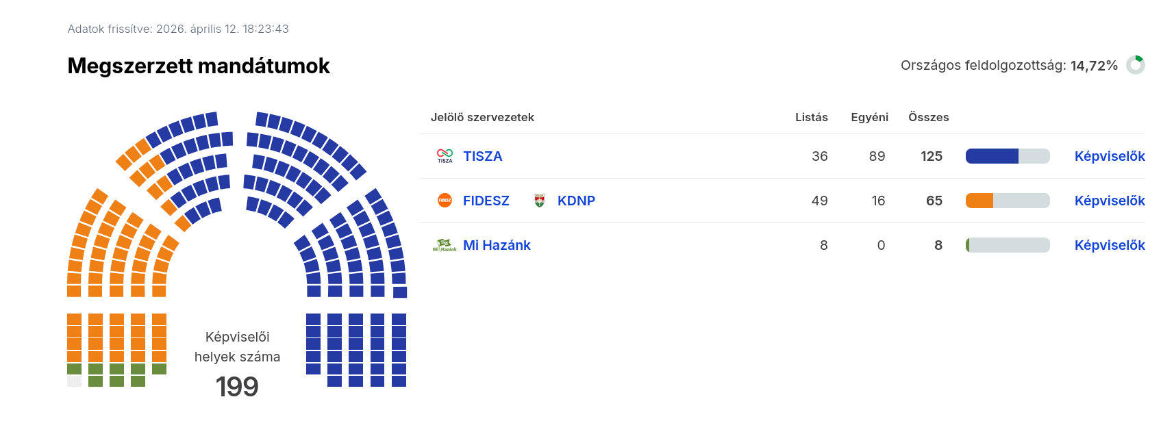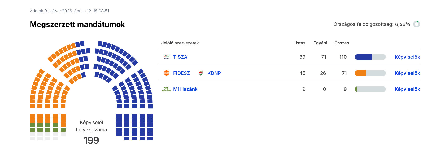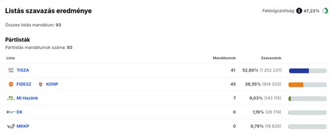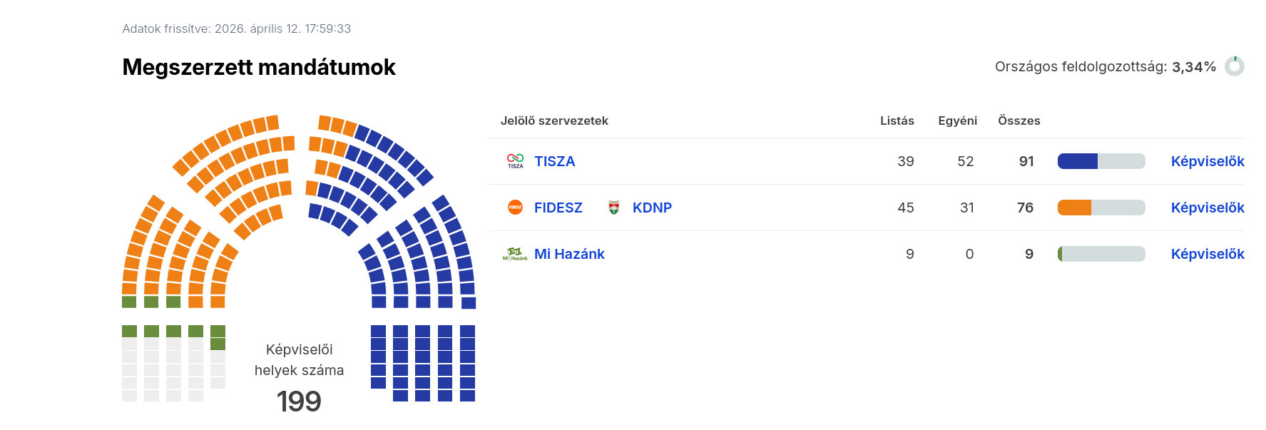 Az ábrák közötti feldolgozottság eltérő, illetve az egyéni képviselőknél való állás is számít, ezért ellent mondhatnak egymásnak. A nemzetiségi listák közül a cigányoké később érdekes lehet, de az ő mandátumokkal majd akkor számolnak, ha összeszámoltak kellő érvényes szavazatot.