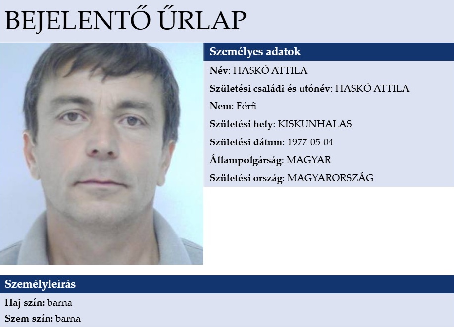 A rendőrség egyelőre csak eltűntként keresi Haskó Attilát. A személyiségi jogok védelmére hivatkozva a hatóság nem adott felvilágosítást arról, hogy a férfi ellen folyik-e esetleg nyomozás valamilyen jogsértés miatt.