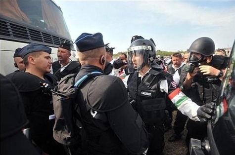 Több száz rohamrendőr hatolt be Szentendre külterületén arra a magánterületre, ahol a Magyar Gárda egyenruháját viselő mintegy ezer ember tett esküt szombat délelőtt.