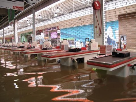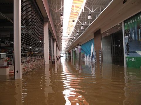 A hatalmas árhullám miatt átszakadt a gát, víz alá került a madaras teszkó is.