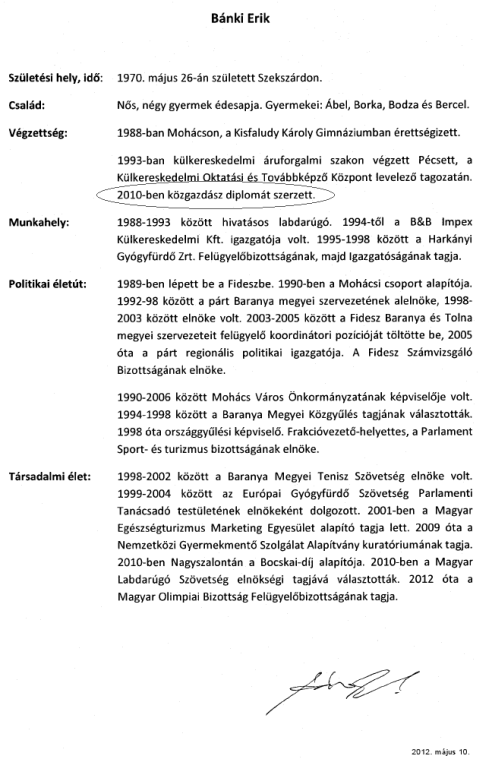 A Bánki Erik nevű, önmagát diplomás közgazdászként szidolozgató, de csak OKJ-s szakképesítéssel rendelkező (ez utóbbi csak az előbbi fényében probléma) nyikhaj kapcsán némi plusz információ szükséges a teljes megértéshez. A Szilágyi György által tett bejelentéshez ugyanis nem mellékelik azt a pdf formátumú önéletrajzot, amiben a trágár nímand diplomát hazudik magának.
