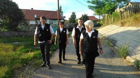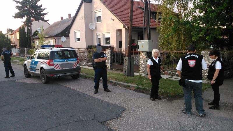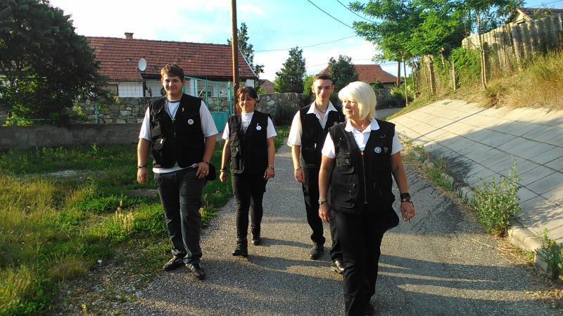 Pár perccel később egy idős nénike állított meg minket, hogy kit temetnek, nem tudjuk e? Egy kedélyes beszélgetés keretében felvilágosítottuk a nénit, hogy kik, és miért vagyunk, mi a célunk. "Hála Isten! Végre vigyáznak ránk is" - folytatta a néni a közös beszélgetésünket. Elmondta, hogy neki és a szomszédjának is két-két kutyája vigyázza a portájukat a betörők, tolvajok "áldásos" tevékenységétől, ha bármi ok miatt el kell hagyni hosszabb-rövidebb időre a lakásukat. Búcsúzóul megkértük, hogy minden beszélgetésében említsen meg minket az ismerőseinek, mit tudott meg tőlünk. Tudtára adtuk, hogy gond, baj estén bátran keressen, keressenek minket.
