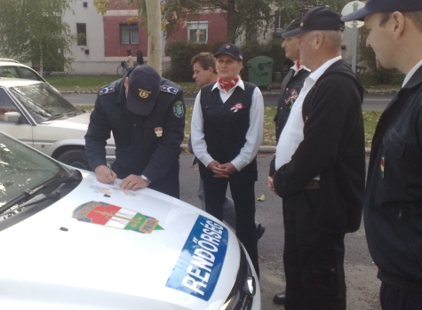 Miután elmentünk a gárdistákkal békésen, az autómhoz értem, és akkor már az előbb említett és a képen jól látható sündörautó mögém állt, és engem kezdtek el zaklatni, mert jobbikos vagyok és Gárda-szimpatizáns. Hát kérdezem én, mi ez, ha nem diktatúra, ami ebben az országban folyik?