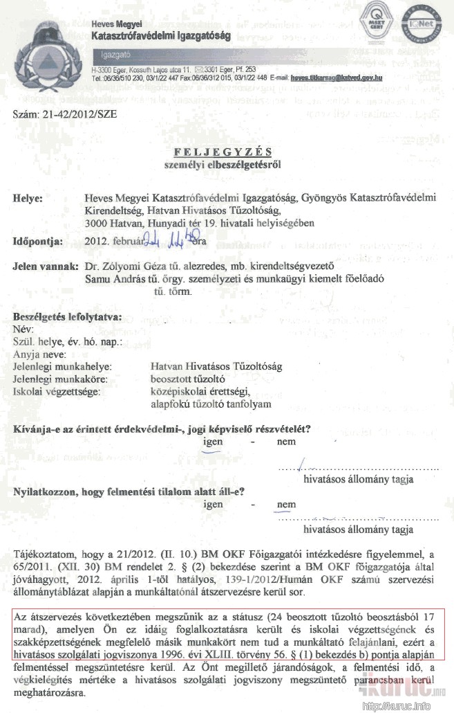 Ne haragudjanak, hogy levelemmel zavarom Önöket, de úgy éreztem, meg kell osztanom ezt az iratot. Nem értem ugyanis, hogy a mai napig hogyan képesek vezetőink azt hazudni, hogy a tűzoltóság berkein belül nem lesz leépítés!
