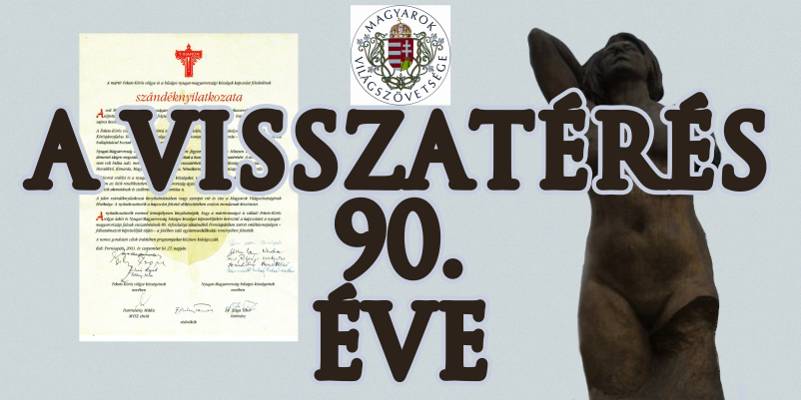 Kilencven évvel ezelőtt, 1923-ban tért vissza trianoni elszakítottságából tíz nyugat-magyarországi, Pinka-völgyi falu. A Magyarok Világszövetsége szombaton, október 5-én 11 órakor a Magyarok Házában, A Visszatérés 90. éve című rendezvénnyel emlékezik meg a nagyszerű eseményről. Ez alkalommal a tíz hűséges falu képviselői tíz erdélyi, Fekete Körös-völgyi falu magyar vértanú közösségével együttműködési megállapodást kötnek. A rendezvényt a Rákóczi Szövetség is támogatja.