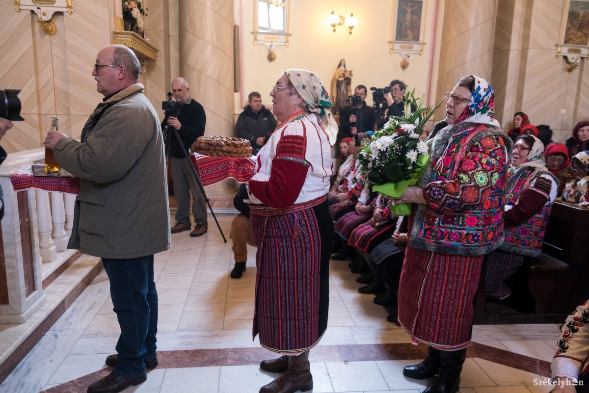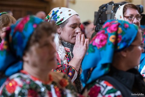 Nyisztor Tinka elmondta, igazi ünnepi hangulat uralkodott a templomban, amit az is jelzett, hogy hat-nyolc csángó faluból népviseletbe öltözve érkezett a hívek egy-egy csoportja. Hozzátette, az első magyar misét egyórás szentségimádás előzte meg, és már erre is majdnem megtelt a templom. A szentségimádás során többek között a keresztúti áhítatosságot imádkozták, amelynek minden stációja után egy-egy magyar éneket énekeltek el. „Olyan tiszta szívből énekelt mindenki, és olyan szakralitása volt az egésznek, hogy érezni lehetett az erőt, ami a közösségben van” – mondta Nyisztor Tinka, aki szerint a jelenlévők többsége tudta a magyar énekeket, és felszabadultan énekelt.